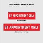 BY APPOINTMENT ONLY Riders serve as friendly reminders that interested buyers and visitors need to make an appointment with you in advance. The product is made with durable, weatherproof Coroplast 10mm. Various sizes, grommet options and riding styles are available