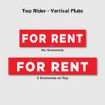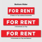 Eye-catching white and red FOR RENT Riders are perfect to highlight your listings for rent. The product is reusable, easy to install, fade-resistant, weatherproof, and cost-effective. We offer three popular sizes and two riding style options.