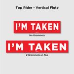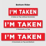 Give local home sellers a good reason to list their properties with you. Red and white I’M TAKEN Riders sitting on the top or beneath your main for sale signs will instantly grab the attention of potential sellers. The product is durable, weatherproof, cost-effective and comes in various sizes, grommet options and riding styles.
