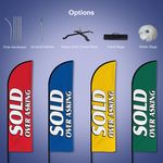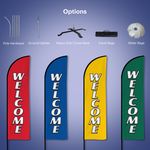 Tall, eye-catching Homelife Stock Feather Flags are sure to turn heads! The unique design and great visibility of this product give it a competitive edge, making it a perfect choice for a wide range of promotional purposes. The product comes in four beautiful colours and a variety of text options. You may choose a standard kit including pole hardware, ground spike, and travel bag or order the fabric only without the said additions. The water bag option is also available in case you order the heavy-duty cross base.