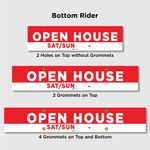 Announce the day and time of your next open house using OPEN HOUSE SAT/SUN (Flexible Time) Riders. The product is made with Coroplast 10mm, a long-lasting, highly resistant material for long-term outdoor use. Choose from the options available and order.