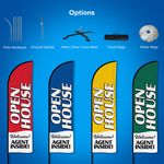 Tall, eye-catching REMAX REALTRON Stock Feather Flags are sure to turn heads! The unique design and great visibility of this product give it a competitive edge, making it a perfect choice for a wide range of promotional purposes. The product comes in four beautiful colours and a variety of text options. You may choose a standard kit including pole hardware, ground spike, and travel bag or order the fabric only without the said additions. The water bag option is also available in case you order the heavy-duty cross base.