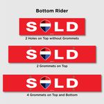 SOLD (REMAX BALLOON) Riders spread brand awareness and entice local sellers to list their homes with you. Our riders come in three sizes and two riding styles. You may choose bottom riders with 4 holes/grommets or top riders without grommets. Select the right size and order.