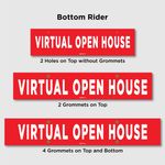 Promote your virtual event using VIRTUAL OPEN HOUSE Riders. It’s a great way to maximize the number of visitors without having them physically attend the location. The bright, eye-catching red and white colours used are sure to get noticed by the target audience. The product comes in three sizes. Also, you may choose your riding style of preference.